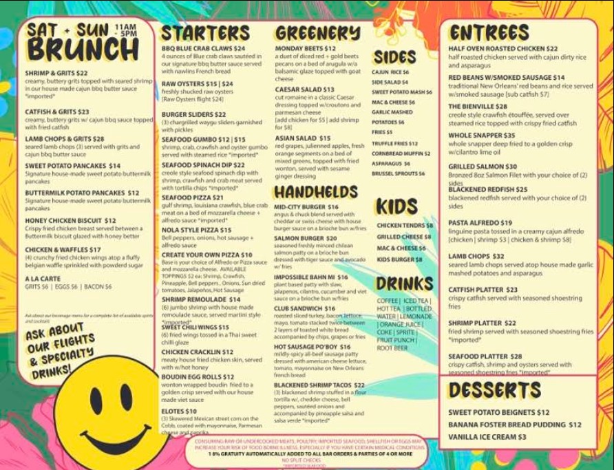 At Monday | Restaurant + Bar, we pride ourselves on offering a contemporary and welcoming atmosphere for every guest. Located in the heart of New Orleans, our menu features an array of fresh, flavorful dishes that highlight both American classics and Southern-inspired cuisine. Whether you're in the mood for a delicious brunch, savory lunch, or evening cocktails with friends, we’ve got you covered. Browse our menu below and discover the variety of mouth-watering options available, from handcrafted burgers to artisanal salads and signature drinks. Join us at Monday for a meal you won’t soon forget!
