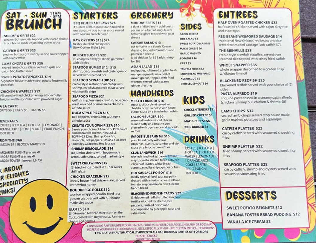 Monday is a vibe. Service was amazing, food was even better. The grits are A1 and the spinach dip is a must. The sweet potato beignet is also worth a try. If I had to nitpick prices are a bit high but the flavors were worth it.